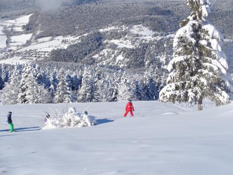 Et une fois sur place, il était évident que cette matinée de ski alpin allait être très sympathique. Le paysage d'abord. Avec une vue sur toute la vallée enneigée de Villard-de-Lans, ses forêts et ses sommets blancs, c'était "trop" beau. Et puis la neige : souple, glissante, bien damée. Enfin, la surprise : Vincent et Chantal avaient décidé que nous changions de pistes. Et voilà toute la troupe des CM à ski partie pour des téléskis plus longs et leurs pistes plus pentues. Il n'y a pas eu de temps de pause et les descentes ont succédé aux remontées.
